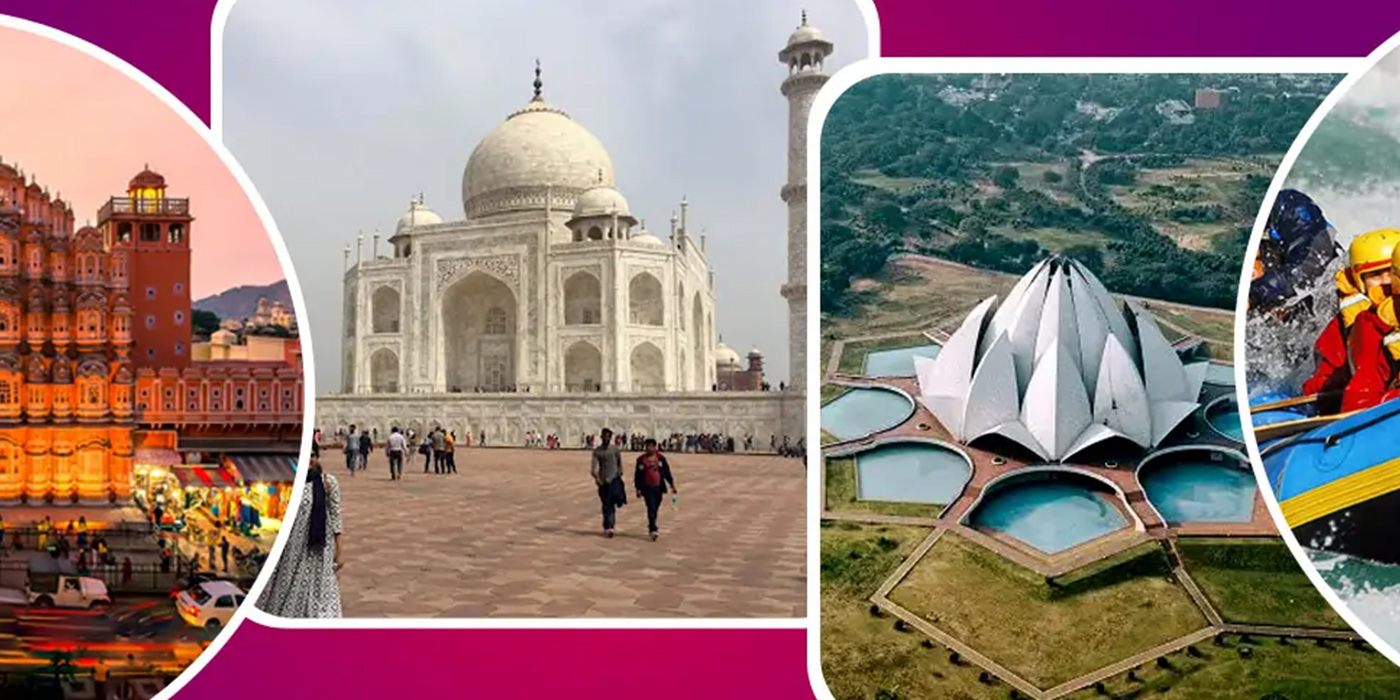 Attractions : Agra Fort, Taj Mahal, Hawa Mahal, Jaigarh Fort, Durga Temple, Birla Temple, Akshardham Temple, Vishwanath Temple, Nahargarh Fort, Albert Hall Museum, Fatehpur Sikri, Deer Park, Amber Fort, City Palace, India Gate, Lotus Temple, Archaeological Museum
